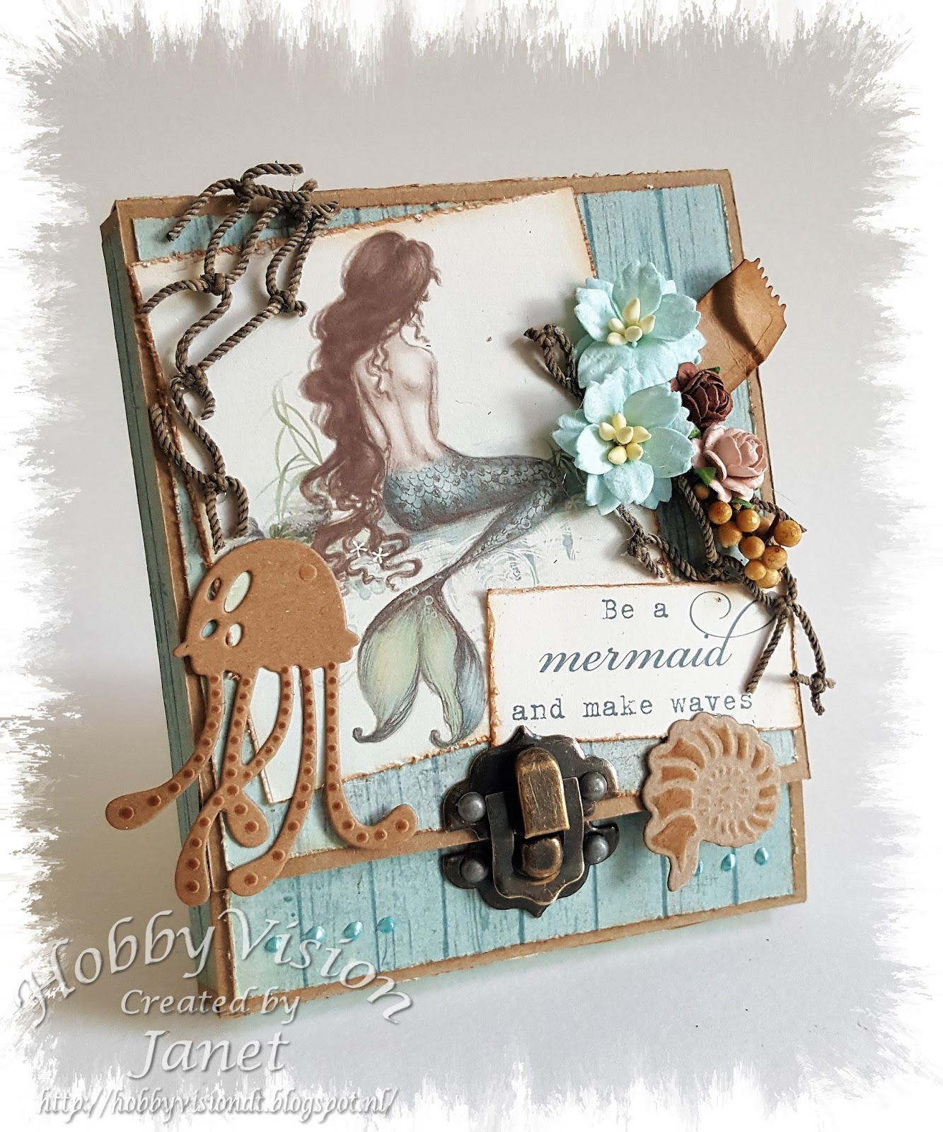 Op de voorkant heb ik het plaatje van de zeemeermin geplakt die bij het papier zat.